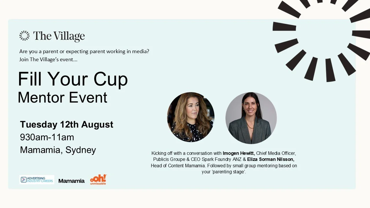 Join us for our quarterly mentor series where we hear from special guest speaker - Imogen Hewitt - on her life as a working parent in the Australian media industry. Following this will be mentor circles tailored to your parenting stage so you can fill your literal and figurative cup by giving you the opportunity to connect with parents in the Australian media industry in micro moments of mentorship.